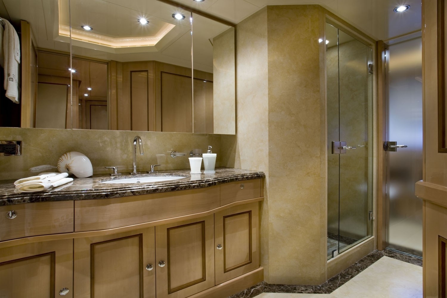 BEHIKE features a displacement hull painted in a desert sand caramel colour; she has four decks, a bulbous hull and can sleep ten passengers and nine crewmembers.