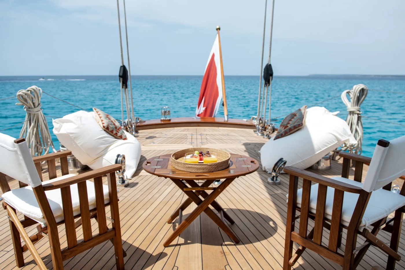In 2009 yacht Windrose had a 6 week period maintenance of varnishing and anti-fouling, 2 new cruising main sails, plus new bed linens.