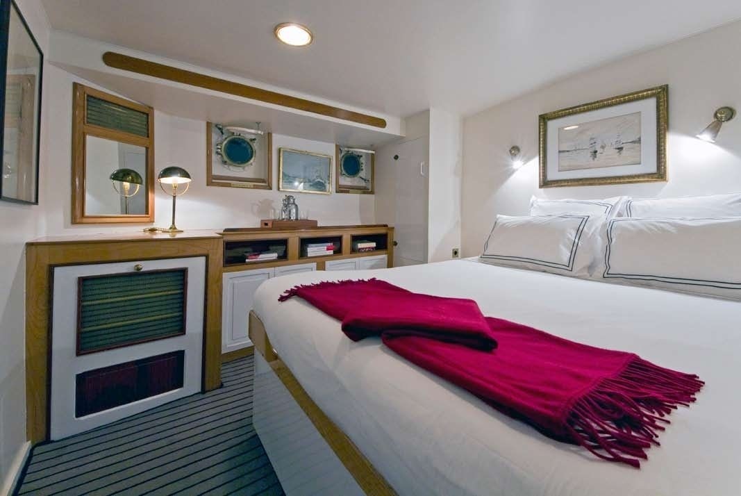 Her Master Cabin, is located on the Main Deck and features a King size bed and an en-suite Shower room. The remaining cabins situated on the lower deck include a VIP Stateroom with a Queen size bed and en-suite Bathroom, two ...