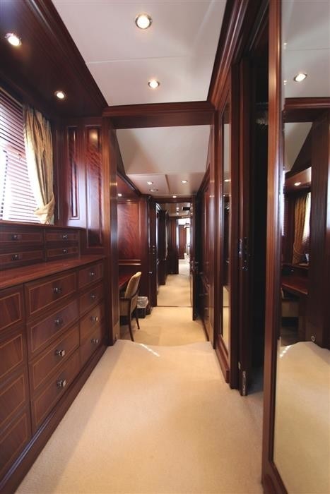 Her Master Cabin is located on the main deck with an en-suite bathroom with shower and twin hand basin. The remaining cabins on the lower deck include two Double VIP guest cabins with ensuite shower and two twin guest cabins with Pullman beds and en-suite shower.