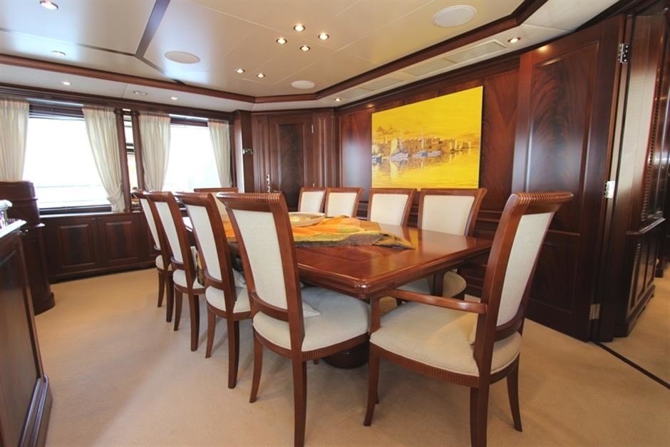 Her Master Cabin is located on the main deck with an en-suite bathroom with shower and twin hand basin. The remaining cabins on the lower deck include two Double VIP guest cabins with ensuite shower and two twin guest cabins with Pullman beds and en-suite shower.