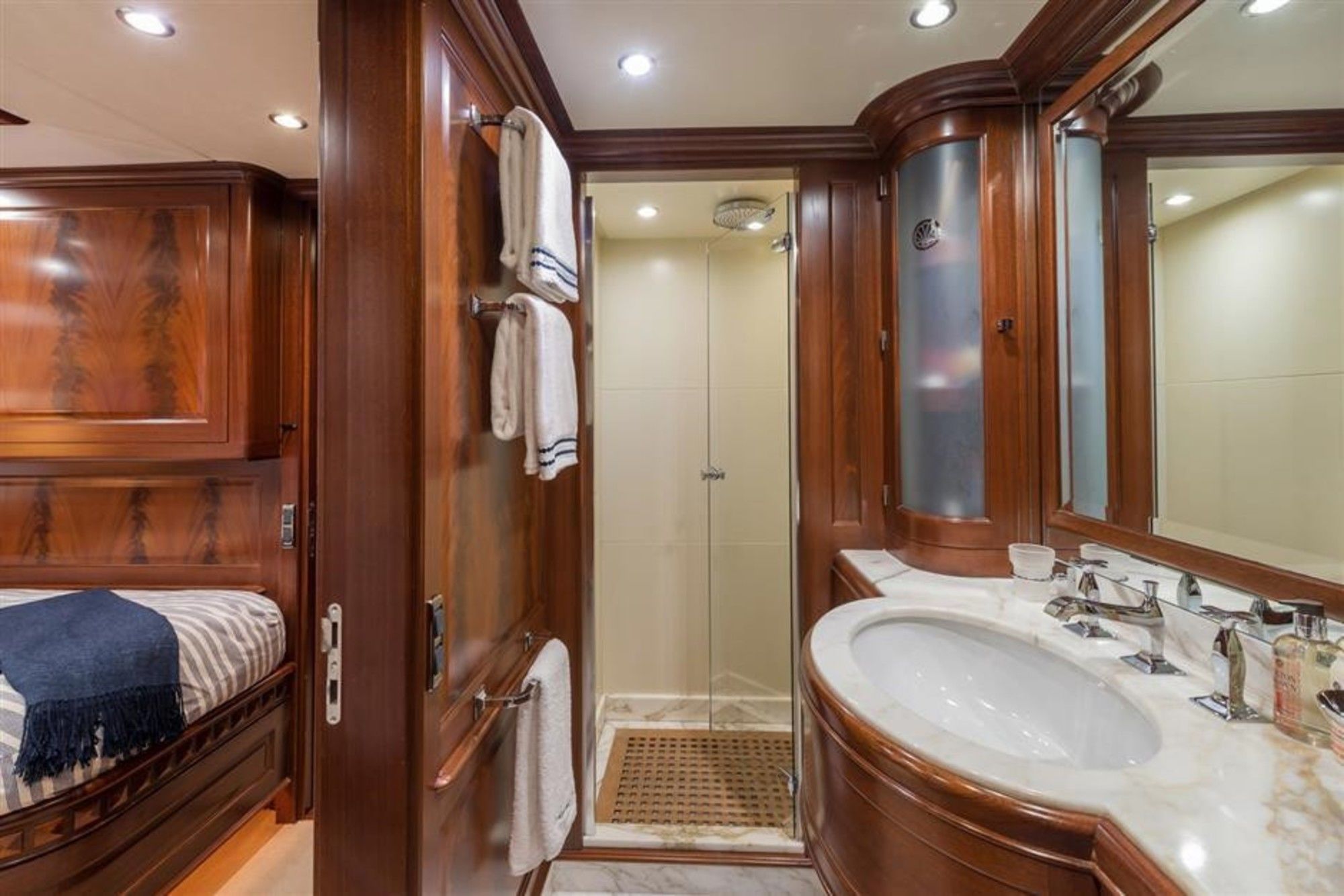 ANDIAMO can accommodate up to 10 guests in 5 cabins. Her full beam master cabin features a king-sized bed and boasts 180° panoramic views surrounded by the lavish decor.