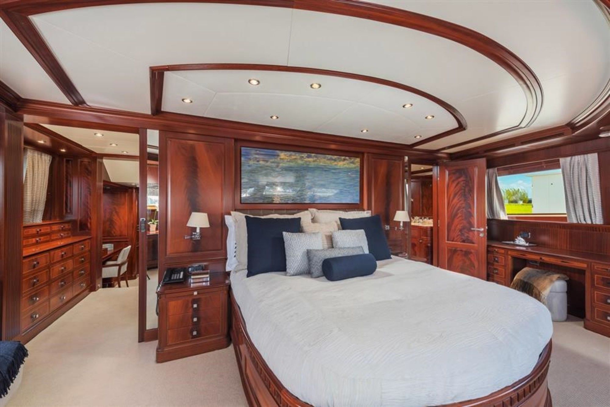ANDIAMO can accommodate up to 10 guests in 5 cabins. Her full beam master cabin features a king-sized bed and boasts 180° panoramic views surrounded by the lavish decor.