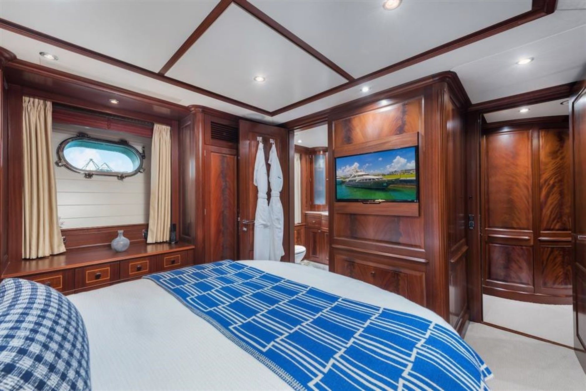 ANDIAMO can accommodate up to 10 guests in 5 cabins. Her full beam master cabin features a king-sized bed and boasts 180° panoramic views surrounded by the lavish decor.