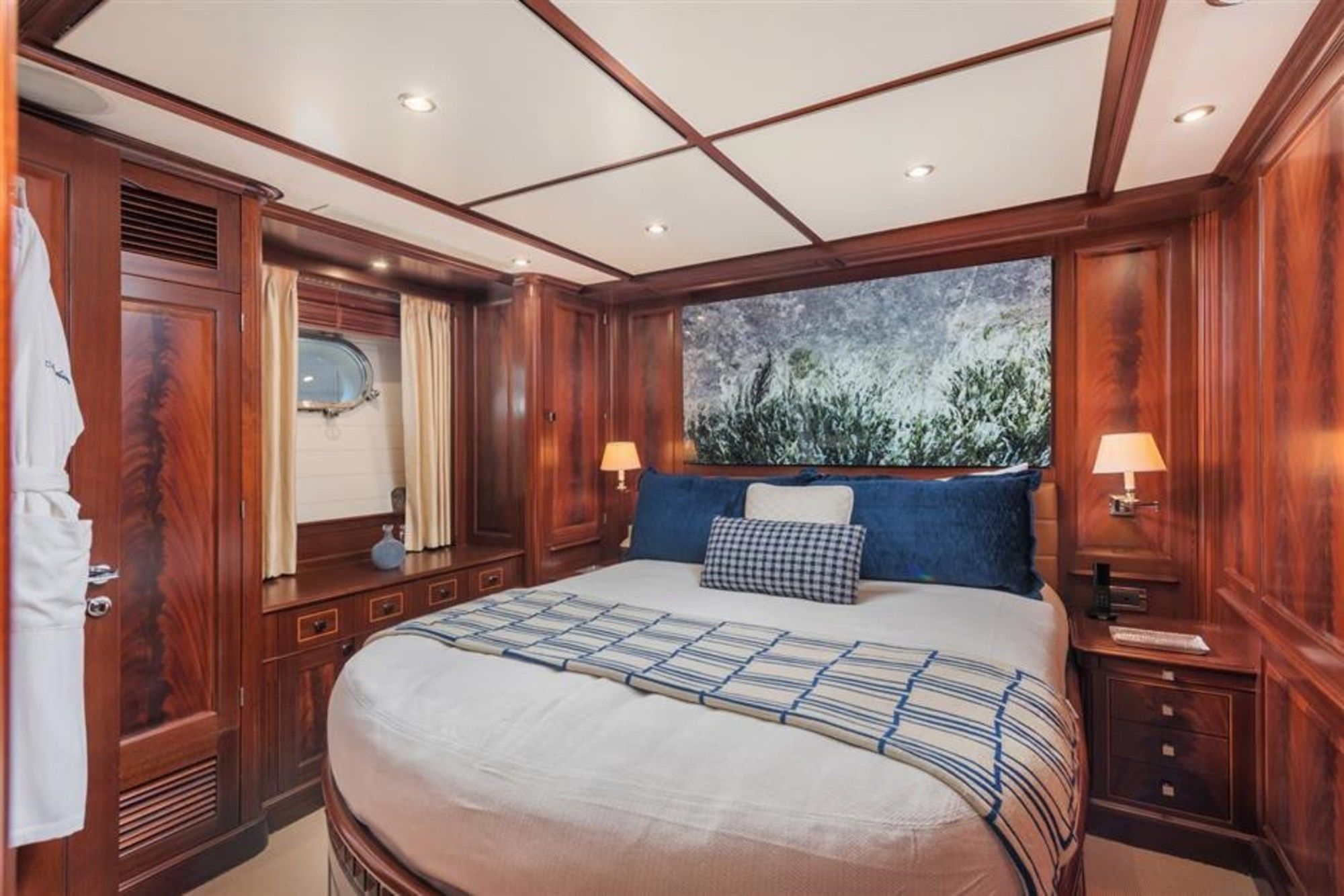 ANDIAMO can accommodate up to 10 guests in 5 cabins. Her full beam master cabin features a king-sized bed and boasts 180° panoramic views surrounded by the lavish decor.