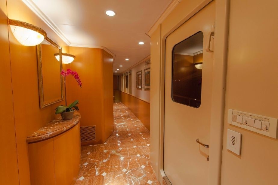 There are 2 Queen Staterooms below deck aft plus an on-deck Queen Stateroom, all with ensuite marble bathrooms with showers.