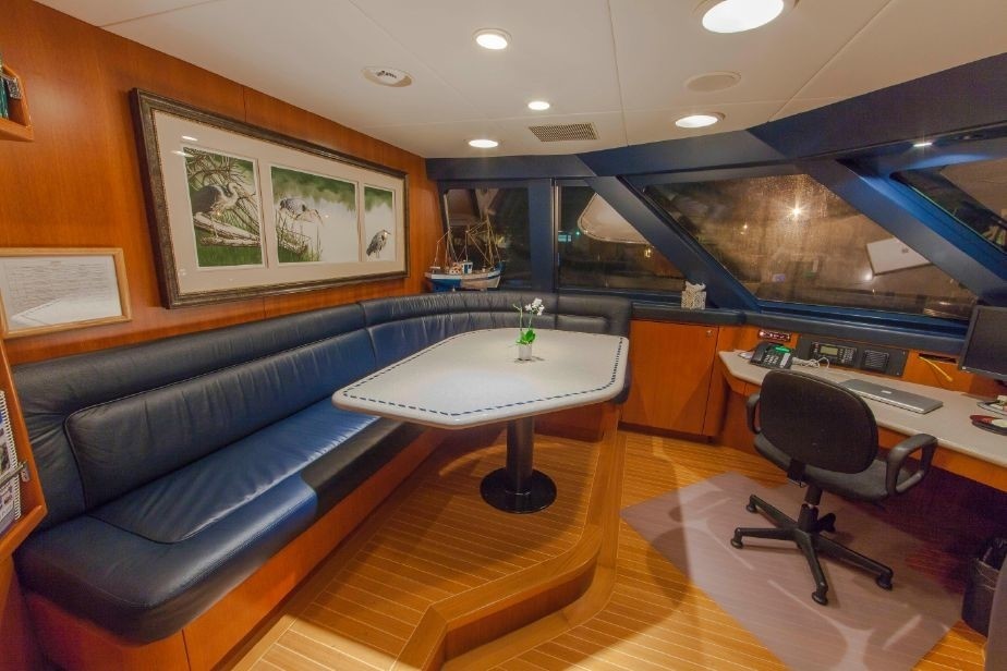 Two identical queen sized guest staterooms with ensuite marble bathrooms with showers are also located below deck and a fourth stateroom with queen berth and ensuite facilities is located on the main deck forward.