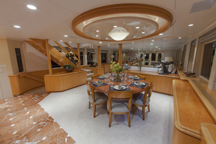 The main salon features comfortable seating, a bar and further forward there is a dining table for up to 8 guests. It is also possible to dine al fresco on the aft deck or enjoy a causal BBQ on the sundeck after a relaxing soak in the Spa Pool.