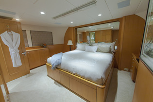 Two identical queen sized guest staterooms with ensuite marble bathrooms with showers are also located below deck and a fourth stateroom with queen berth and ensuite facilities is located on the main deck forward.