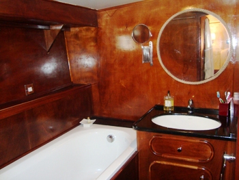 Accommodation includes 2 master double ensuite cabins decorated in oak, mahogany and cream ostrich skin with detailing provided by classic marine charts from the British Admiralty, 2 double cabins (Pullman style) paneled ...