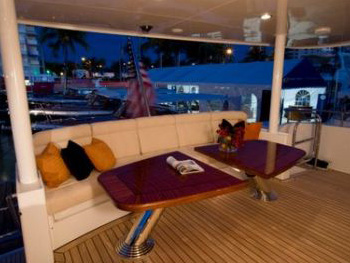 Al fresco dining is possible on the aft deck or on the fly bridge, both of which have beautiful teak tables. The fly bridge also boasts and plenty of lounging areas for sunning or just relaxing.