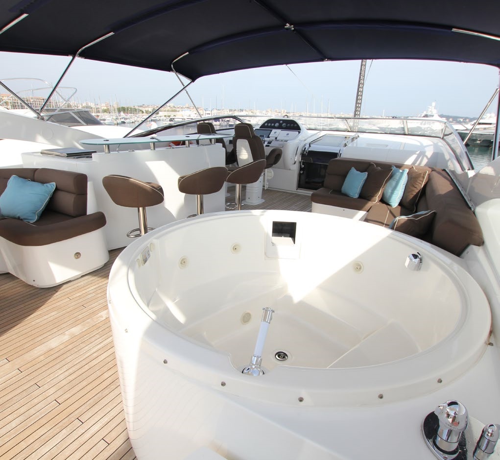She was launched by Burger Boats of America, with naval architecture by Bruce King Yacht Design and an interior by Ken Freivokh Design. Motor yacht NADAN cruises in the Bahamas and the Caribbean with 8 guests sleeping overnight and up to 12 guests for day sailing.