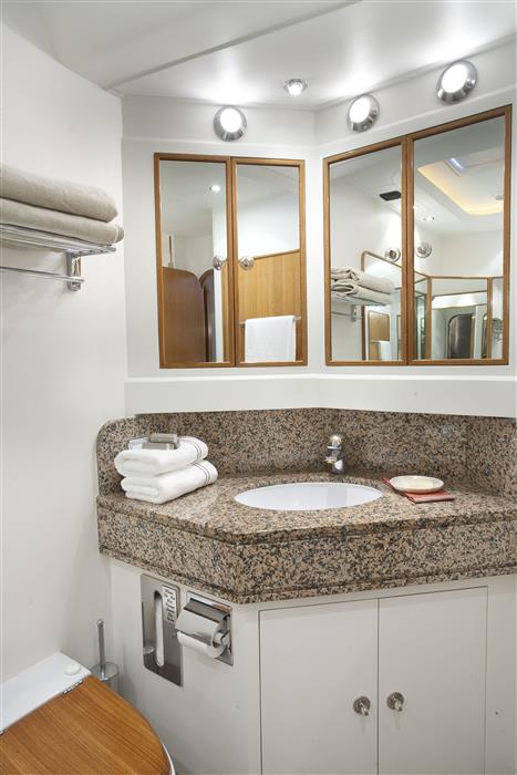 Her Master cabin has a double bed and ensuite bathroom, and the remaining four cabins are convertible, able to change to a double or twin bed configuration depending on the guest’s preference. All cabins have ensuite bathrooms.