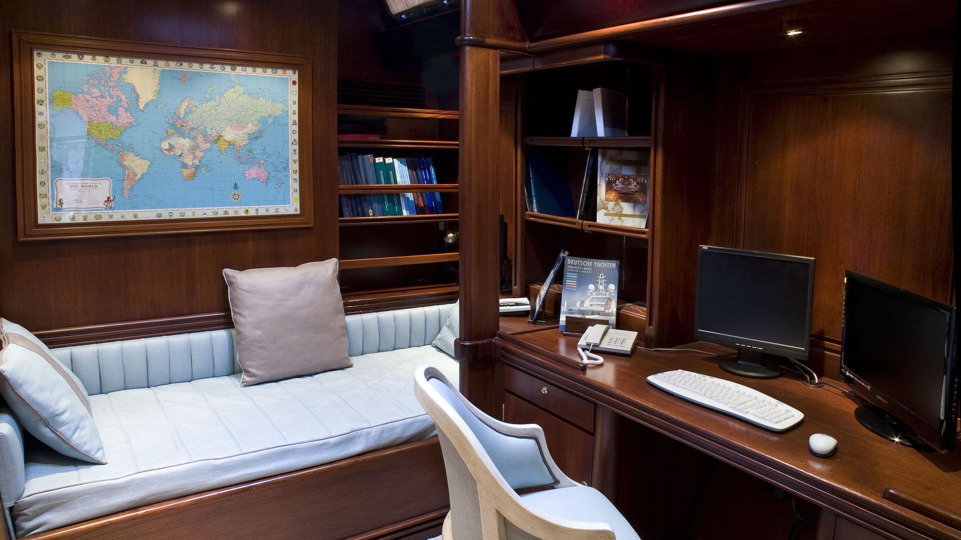 There is a great Aft Deck sheltered by a bimini that is a favourite spot to dine al fresco. She has a crew of 6 who look forward to welcoming you onboard.