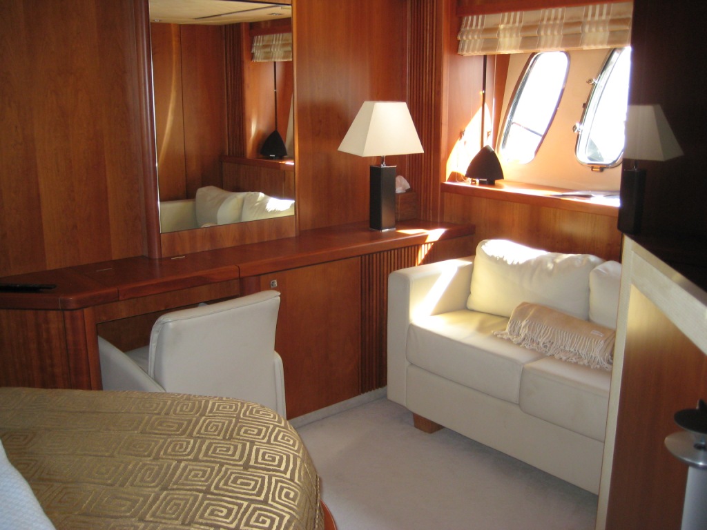 Her master is fitted with a double bed, drawer storage, vanity unit, bedside drawers, walk in wardrobe, and an en suite shower bath. It is also equipped with a flat screen TV and CD/DVD player. The VIP cabin is also fitted with a double bed, hanging wardrobe, an en suite shower bathroom, and equipped with a flat screen TV and CD/DVD player.