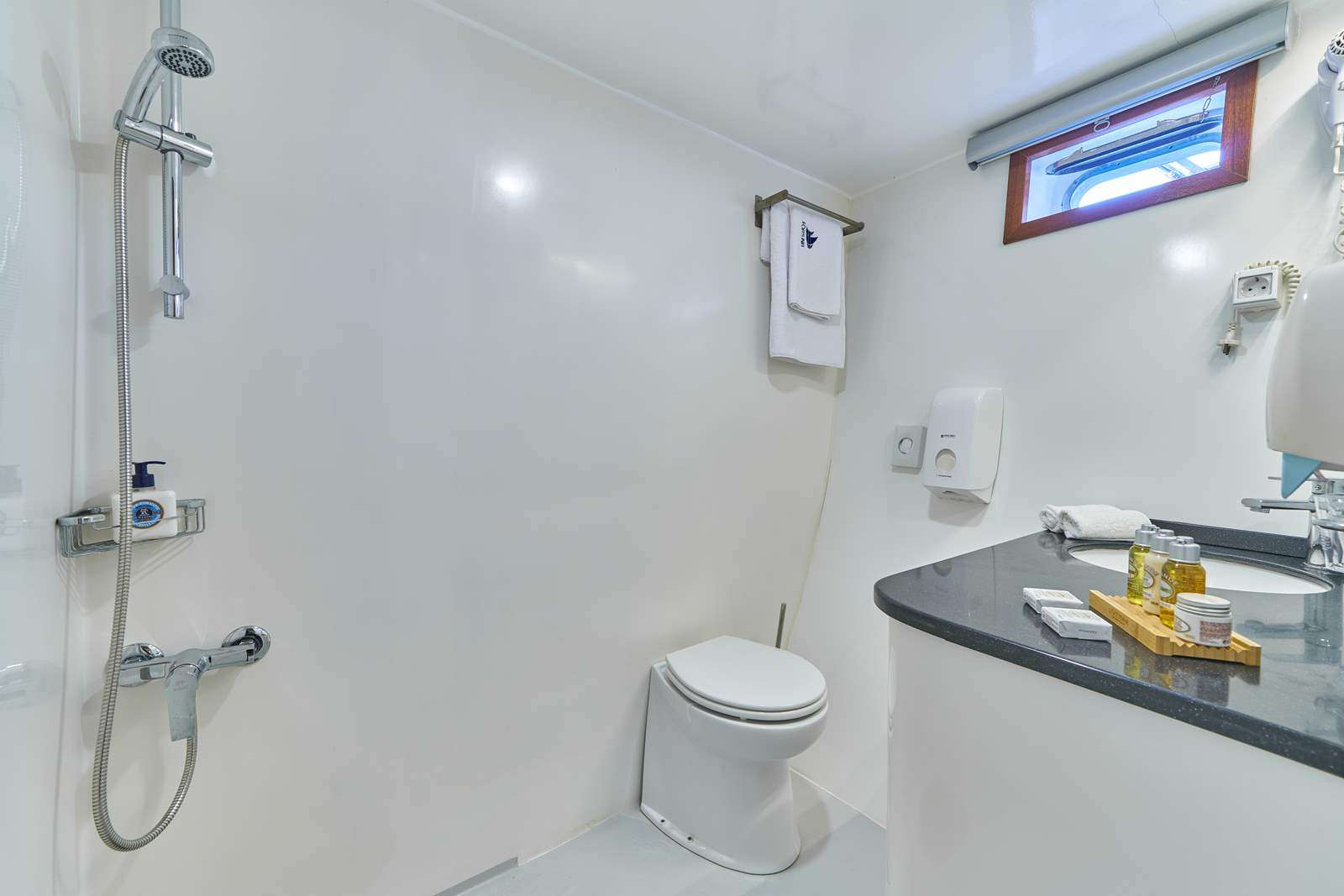 Schooner Fortuna can accommodate 12 guests in 7 cabins including 2 king, 2 double bed cabins and 3 twin bed cabins, each with its own bathroom and toilette and airconditioning unit that runs 24 hours a day.