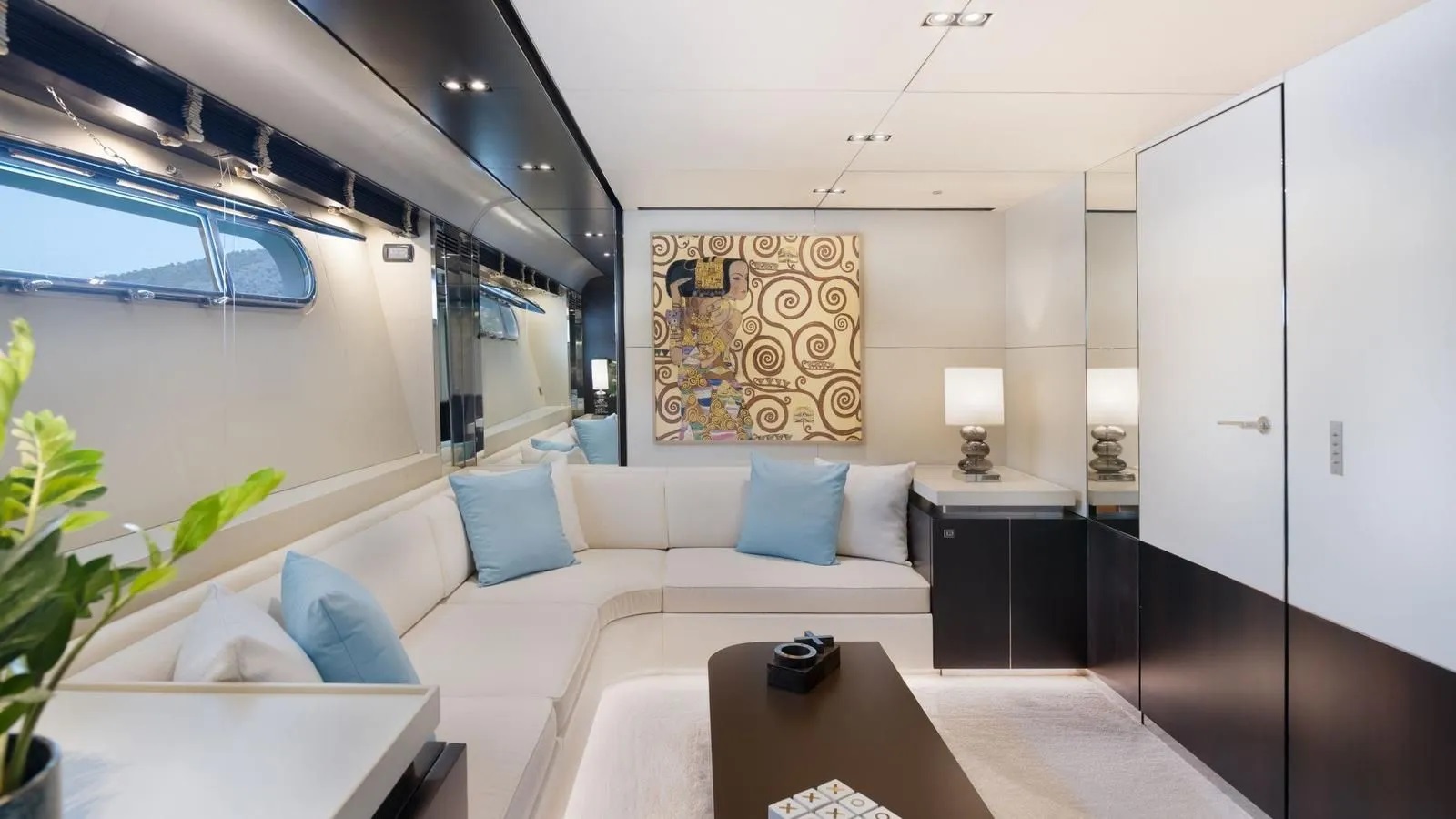 The salon features a large and comfortable cl shaped couch to starboard and there is an entertainment unit to port. Further forward there is a formal dining area that adjoins the salon.