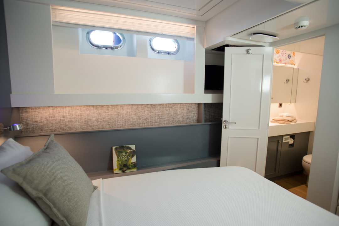 She has a lovely owners' suite with a double bed, and also, she has two identical twin bedded cabins and a fourth study cabin with a convertible French bed. She sleeps up to 9 charter guests in 2 Double and 2 Twin cabins; Cabin/study with convertible slide out French bed.