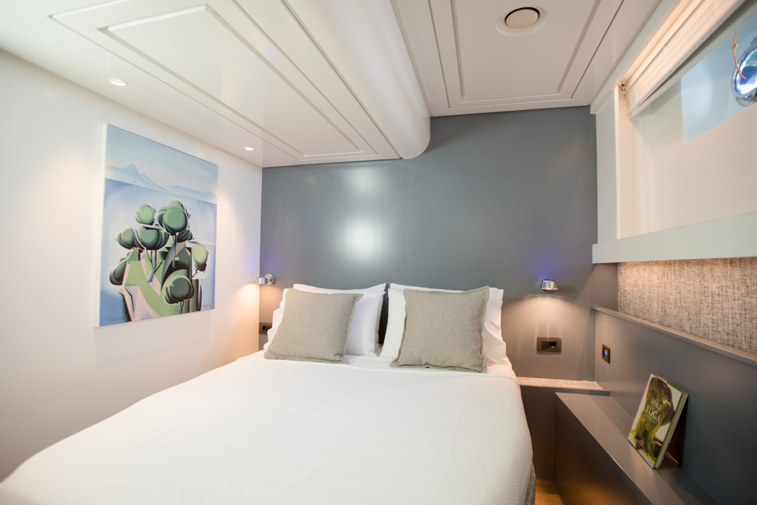 She has a lovely owners' suite with a double bed, and also, she has two identical twin bedded cabins and a fourth study cabin with a convertible French bed. She sleeps up to 9 charter guests in 2 Double and 2 Twin cabins; Cabin/study with convertible slide out French bed.