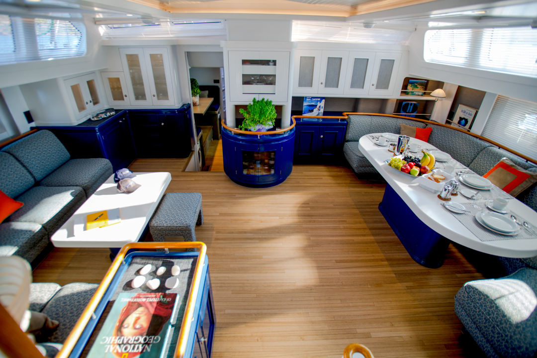 Dinner can be served comfortably for twelve in her semi-enclosed deck saloon, sheltered from either sun or spray and cocktails can be enjoyed under sail from around her aft steering helm ‘wet bar’ with an extensive padded ...
