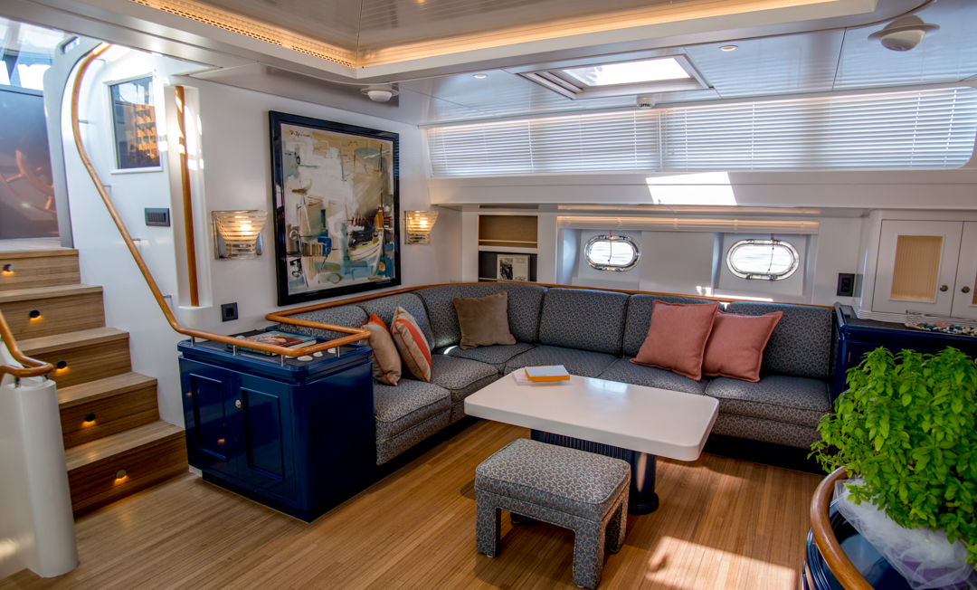 Dinner can be served comfortably for twelve in her semi-enclosed deck saloon, sheltered from either sun or spray and cocktails can be enjoyed under sail from around her aft steering helm ‘wet bar’ with an extensive padded ...