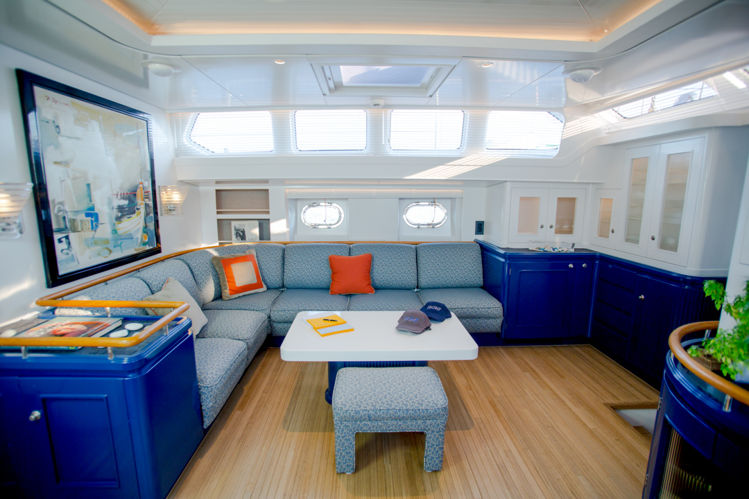 Dinner can be served comfortably for twelve in her semi-enclosed deck saloon, sheltered from either sun or spray and cocktails can be enjoyed under sail from around her aft steering helm ‘wet bar’ with an extensive padded ...