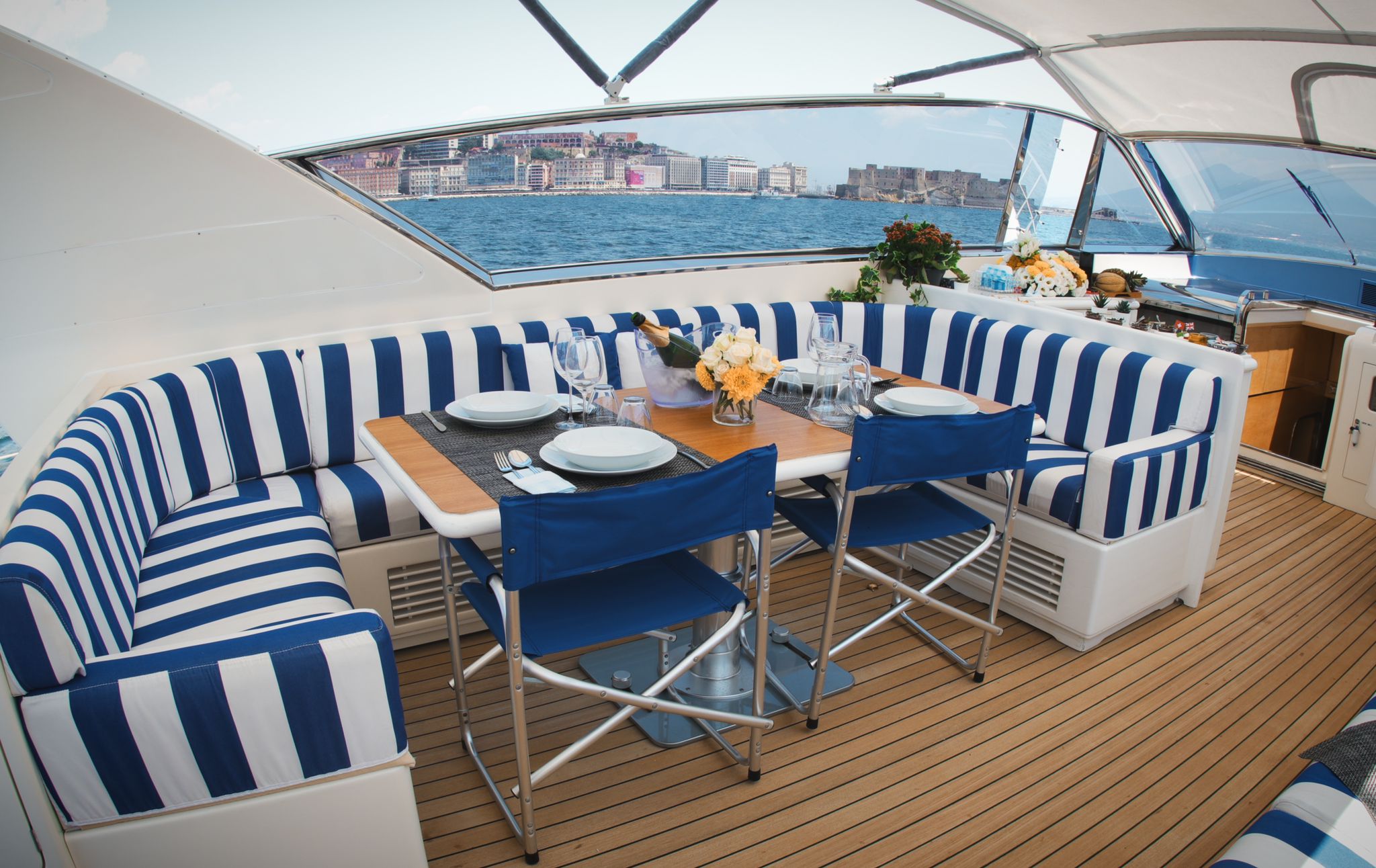 M/Y ELLERY offers guests ample exterior living areas ideal for the West Mediterranean. The main deck is spacious acting as a second salon and can be optionally fully enclosed or completely open.