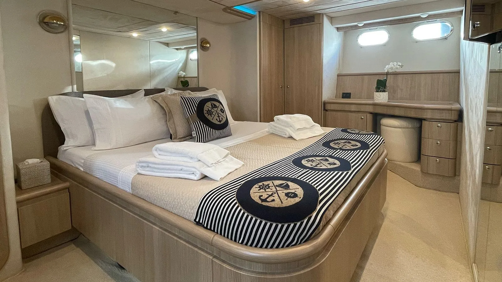 She was last refitted in 2019 and can accommodate a total of 8 guests in 4 cabins including a full-width master cabin, VIP cabin and 2 twin cabins. There are a total of 4 crew members.