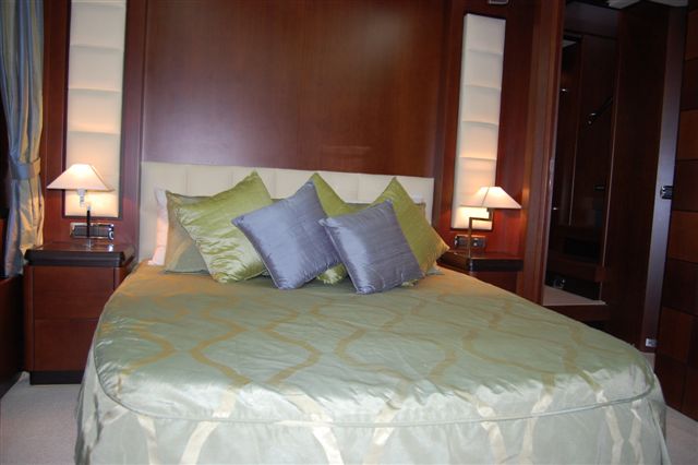 The Master cabin features a king size bed, and an ensuite bathroom with a bathtub, shower and toilet. There is a VIP Cabin with a king size bed, shower and toilet, a Guest cabin with a double bed, shower and toilet and a twin bedded cabin, a pullman, shower and toilet.