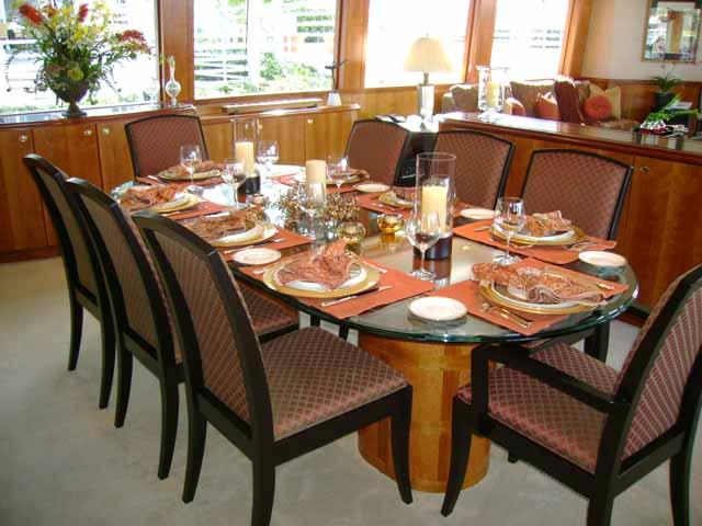 M/Y CARBON COPY (ex New Moon II) has a luxurious salon offering fantastic views from large windows to port and starboard. The salon features a large sofa and cocktail table to starboard as well as a game table and bar on the port side. Forward of the salon is the dining area ideal for formal or family dining.