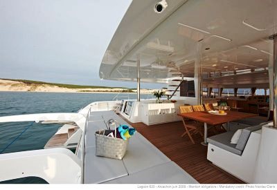 Luxury sailing catamaran SHIDA is a Lagoon 620, measuring 18.90m (62’) launched in 2010. Yacht SHIDA has a luxurious interior and a vast amount of outdoor space including an expansive fly bridge area. She is able to accommodate up to 8 guests in 4 well appointed double cabins.