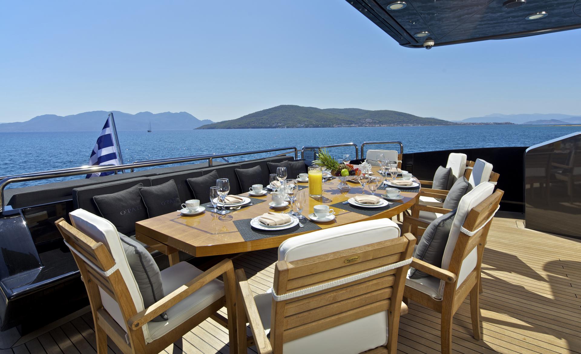 OPATI’s NOTABLE FEATURES ~ Head-turning profile ~ exceptional speed ~ great water toys ~ high-tech entertainment system ~ lovely exterior areas to relax ~ sun deck ~ al fresco dining