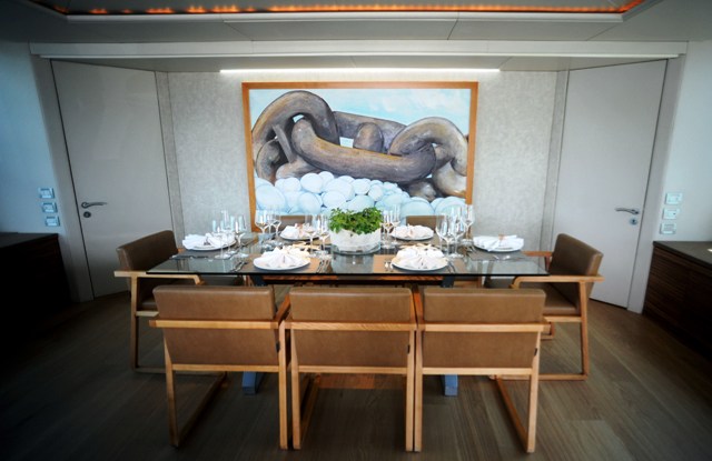 Yacht ROSPIYA can sleep up to 8-11 guests. The Master Cabin is located on the lower deck, provides en-suite bathroom with separate shower cabin and hot tub, office, and walk-in wardrobe. The King size bed can be raised remotely at both the head and feet.