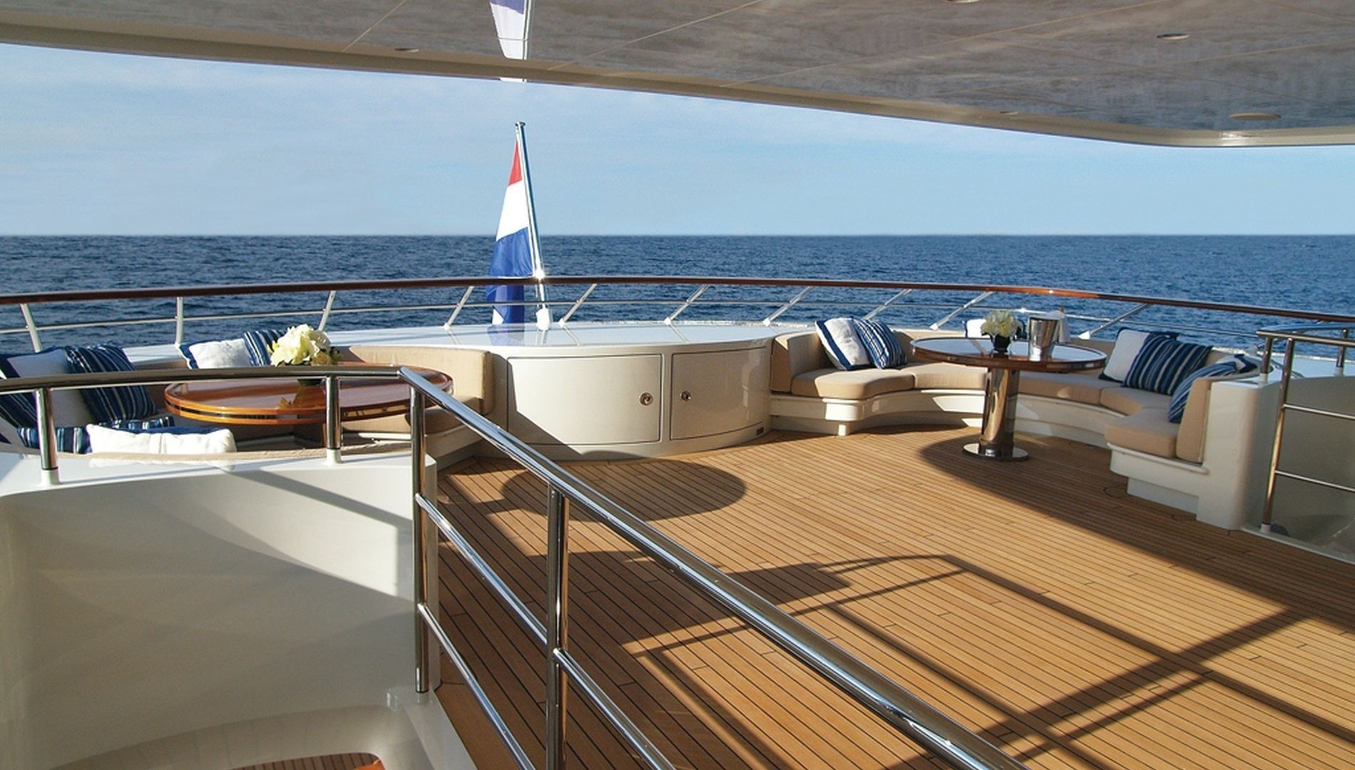 The aft deck has plenty of space to enjoy dining alfresco, as well as soak up the sunshine or gaze at the stars at the uncovered seating area.