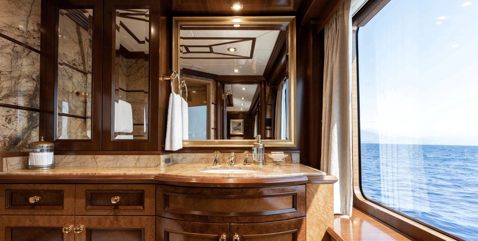 There are also two seating areas arranged on the port and starboard sides close to the stern. There is also a Portuguese deck with a double sun lounger for a private resting spot away from the main group.