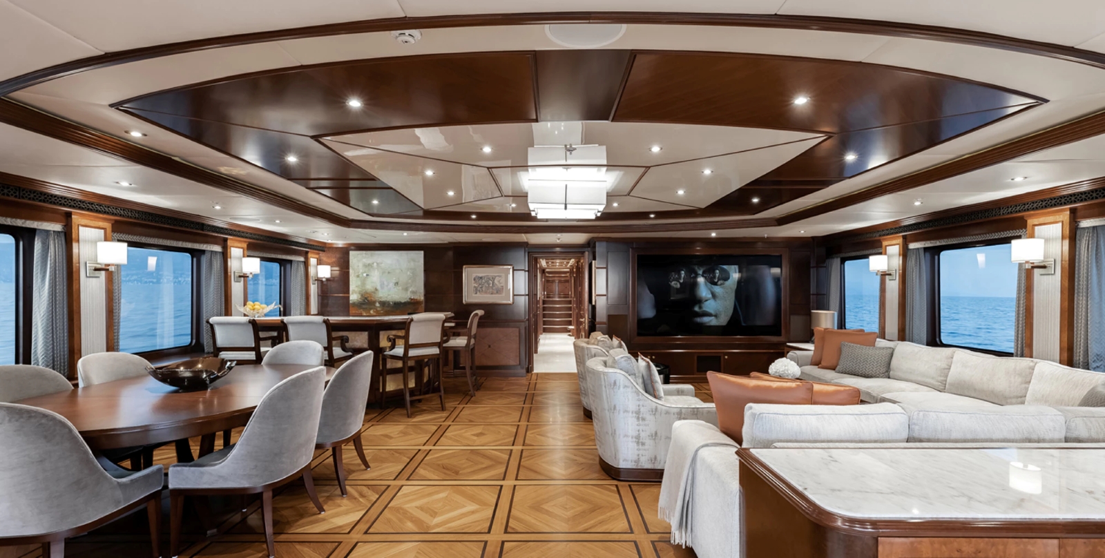 There are also two seating areas arranged on the port and starboard sides close to the stern. There is also a Portuguese deck with a double sun lounger for a private resting spot away from the main group.