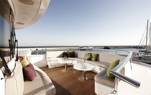 The spa pool and sun lounge of the luxury charter superyacht E&E offers 360° views from the top deck.