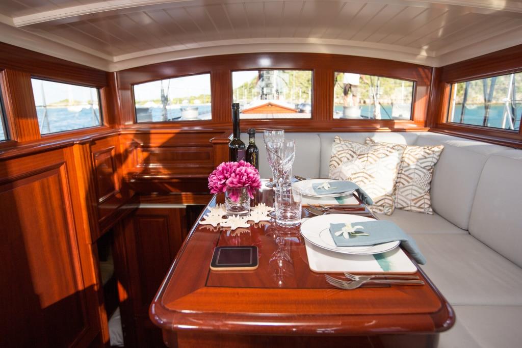 The rig includes a Southern Spars high-modulus carbon mast, boom and spinnaker pole, continuous carbon fibre rigging, North Sails 3Di racing sails and Lewmar high-speed hydraulic winches.