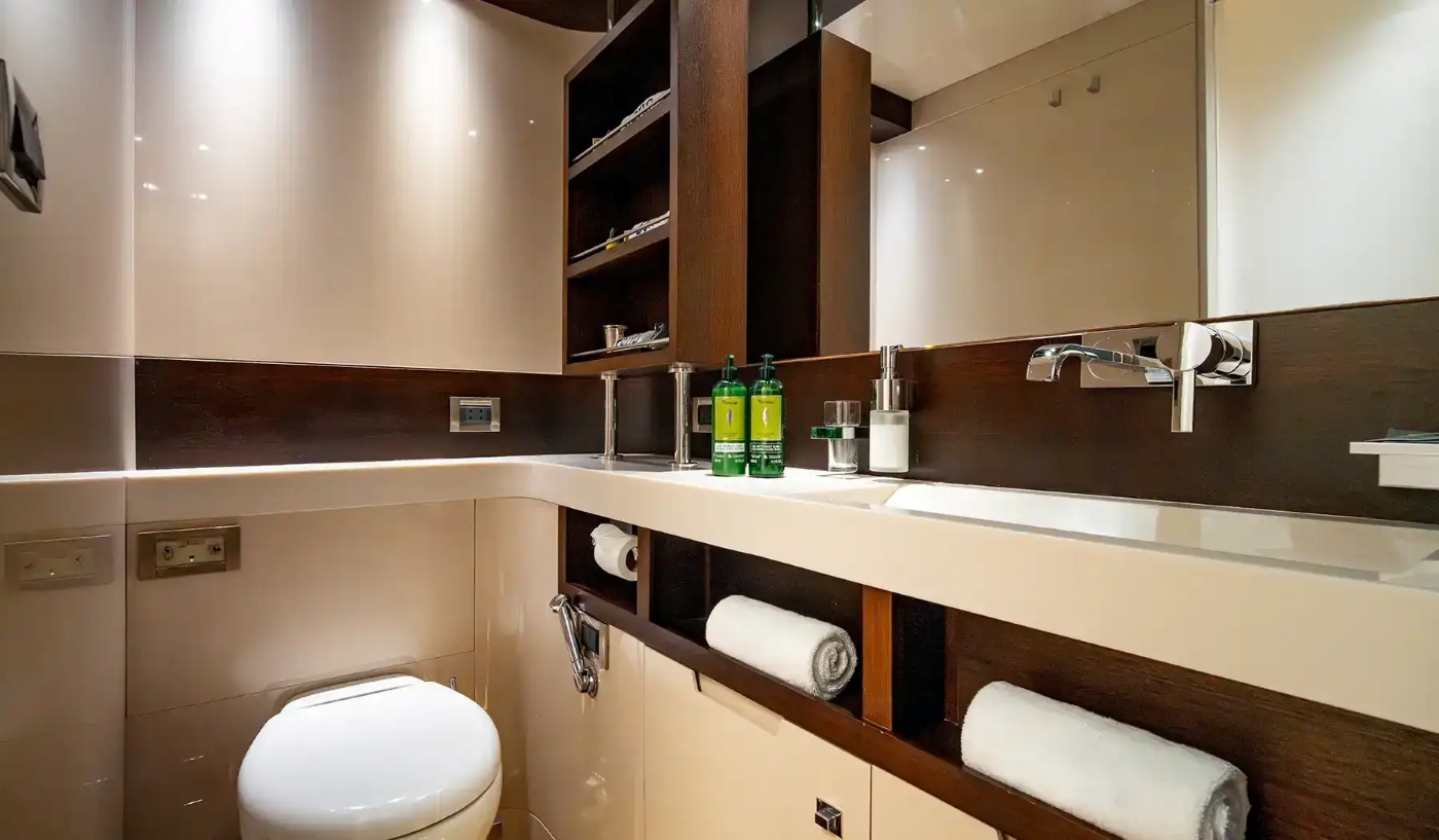 She features high-end specifications making her deserving of her name which means 100 per cent. She measures 35.00m (114' 10") and is able to accommodate up to 12 guests in 5 well-appointed and spacious cabins.