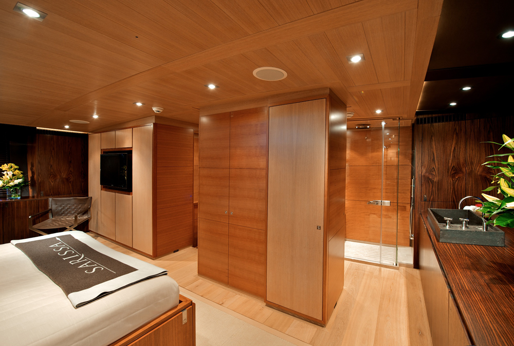 She is able to accommodate up to 8 guests in a Master suite, 2 double cabins (1 of which is convertible into an office), a children’s cabin which has 3 berths, plus a single Nanny’s cabin.