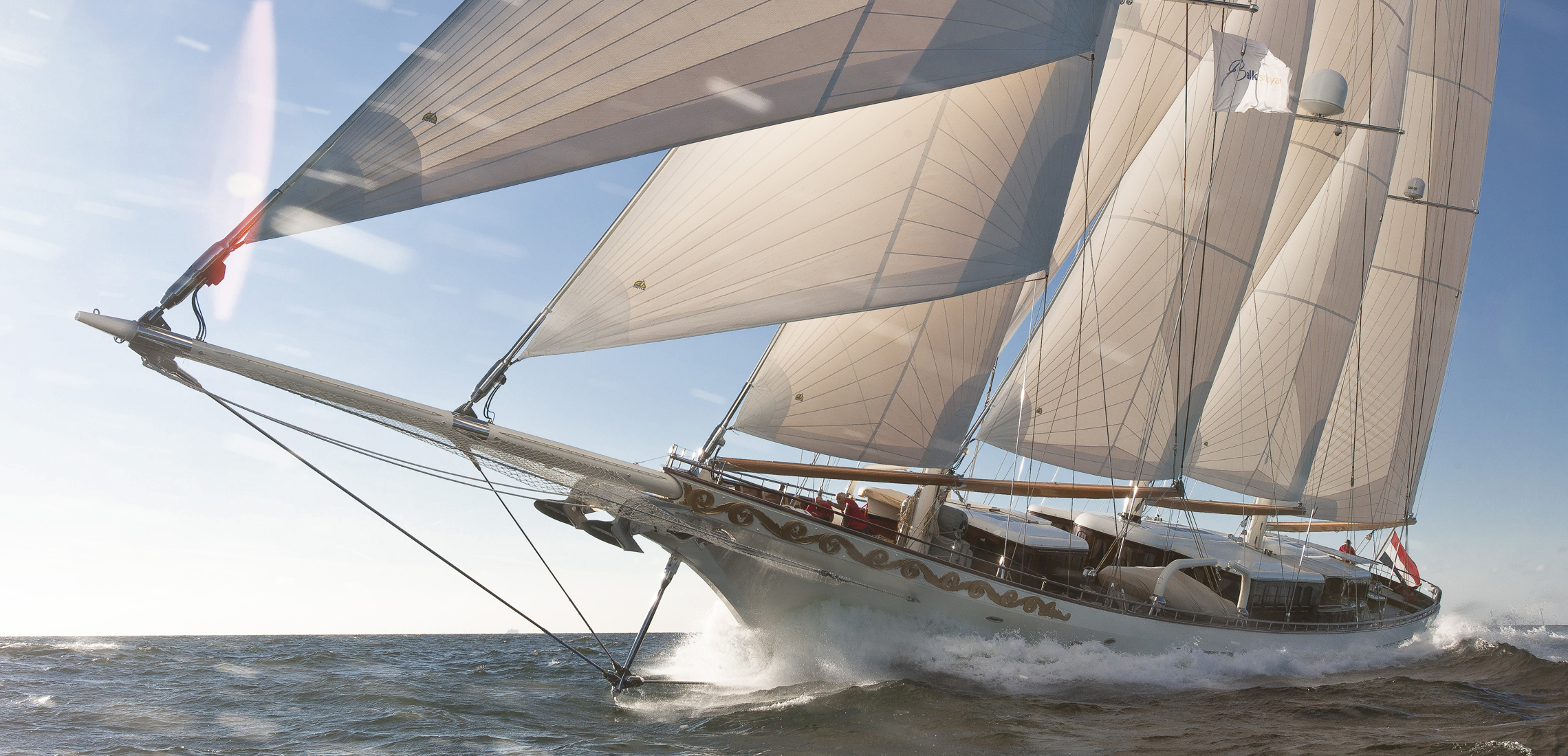 VORONTSOV is an all wood classic sailing schooner. She has thoroughly modern sailing systems, rigged with aluminum spars and carbon fiber booms. All Doyle sails are Reckmann furled and all sail handling gear is Rondal.