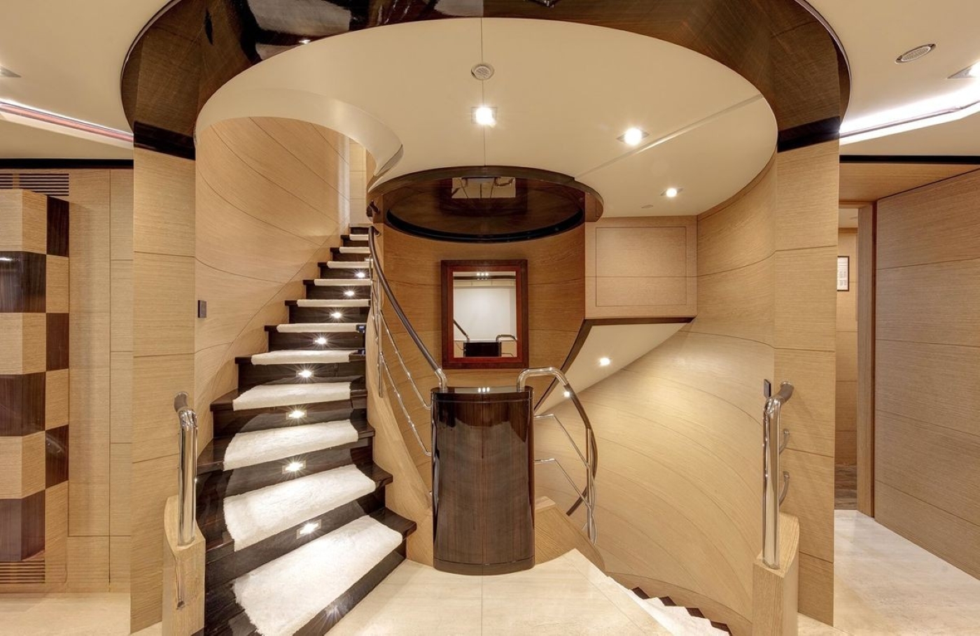 Accommodation on board of the charter motor yacht is provided in five lavish and spacious cabins, each with their own distinct style with an eclectic combination of design elements.
