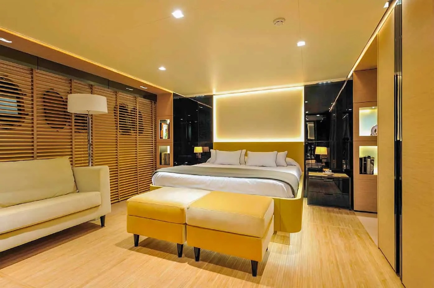 The kitchen is by Boffi and can be found on the main deck, while the lower deck is destined to the owner and his guests, with the owner's suite, a VIP and two twins - all with en-suite bathrooms. There are three crew cabins located forward on the lower deck and can be accessed from the galley.
