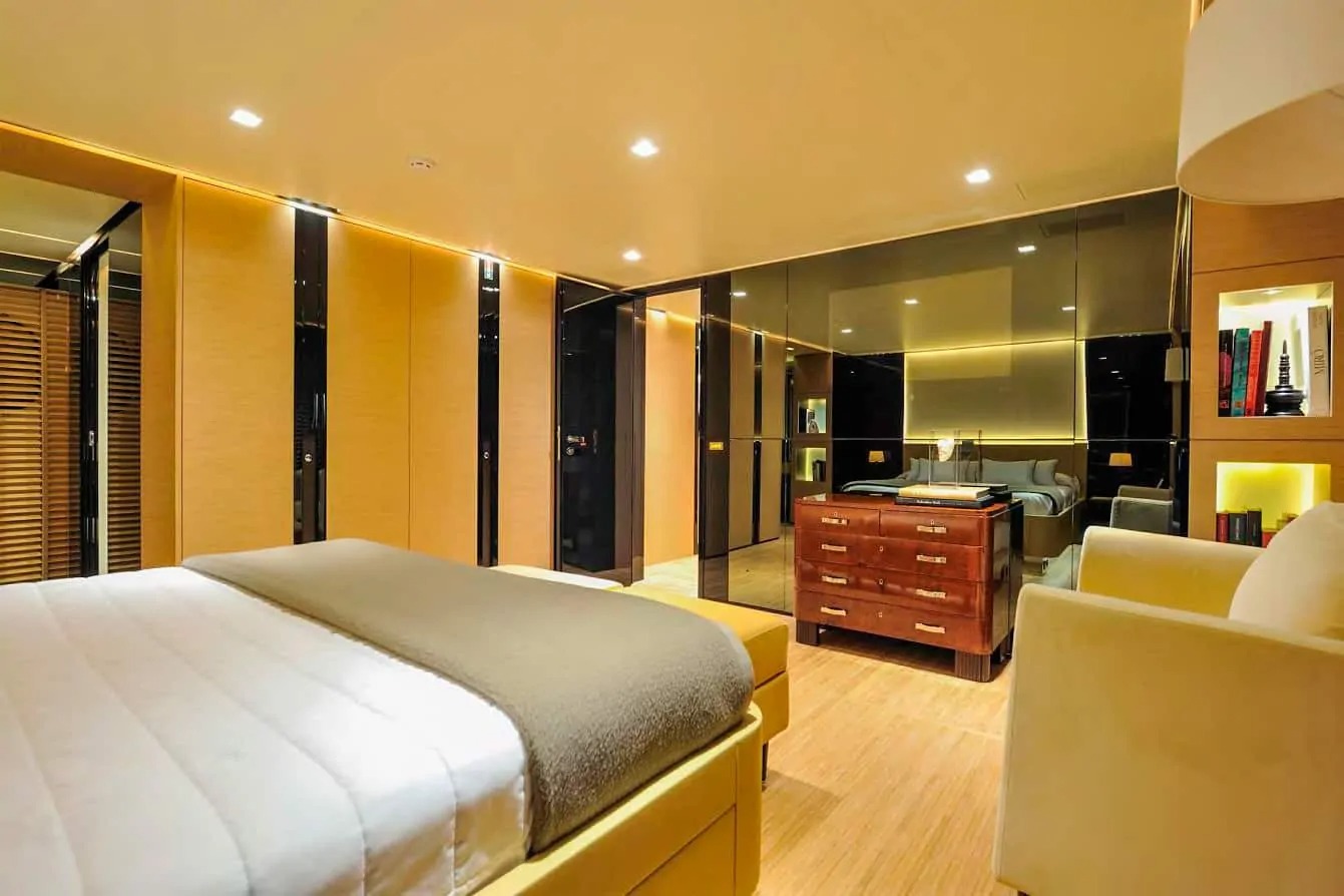 The kitchen is by Boffi and can be found on the main deck, while the lower deck is destined to the owner and his guests, with the owner's suite, a VIP and two twins - all with en-suite bathrooms. There are three crew cabins located forward on the lower deck and can be accessed from the galley.