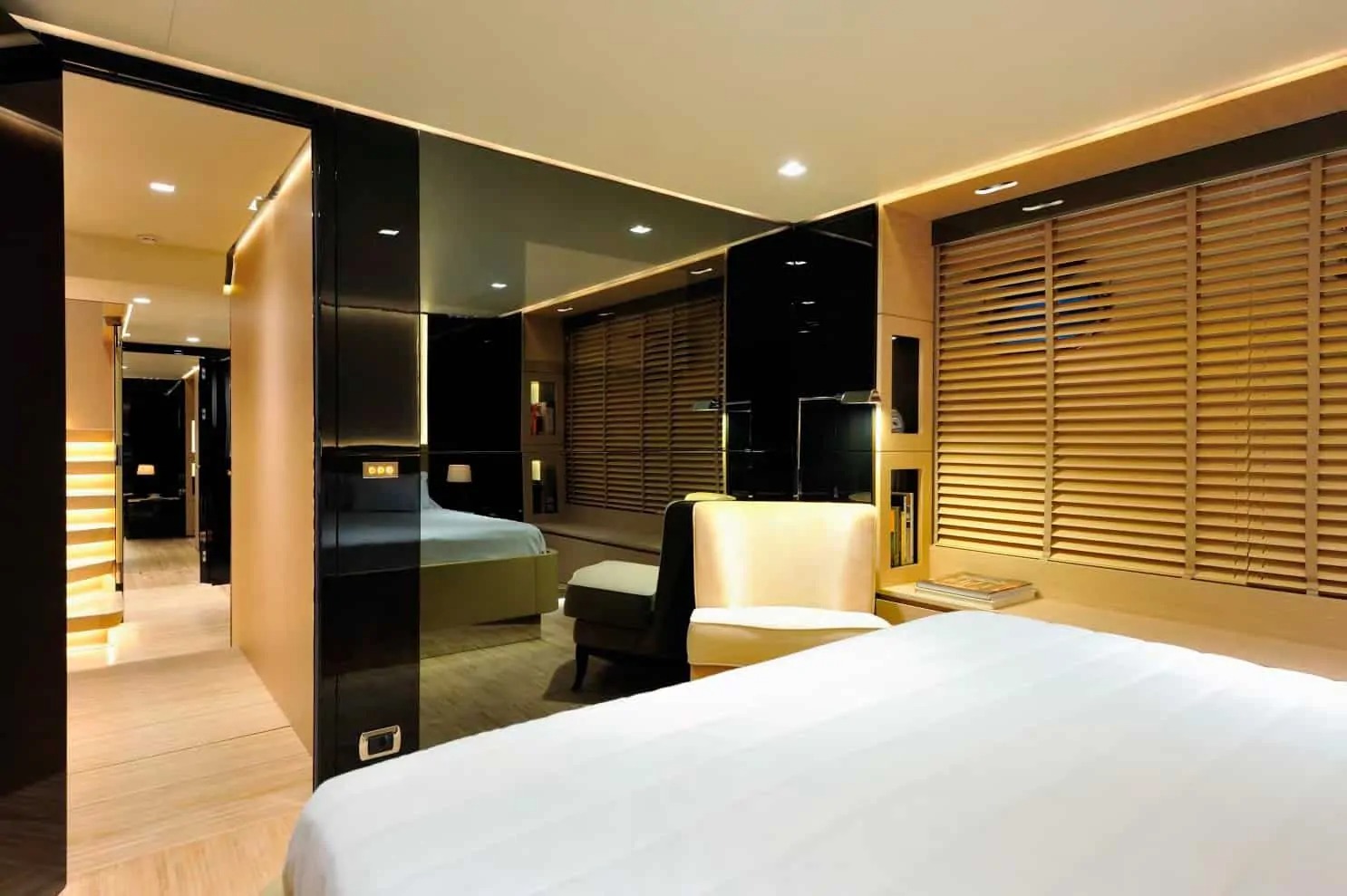 The kitchen is by Boffi and can be found on the main deck, while the lower deck is destined to the owner and his guests, with the owner's suite, a VIP and two twins - all with en-suite bathrooms. There are three crew cabins located forward on the lower deck and can be accessed from the galley.