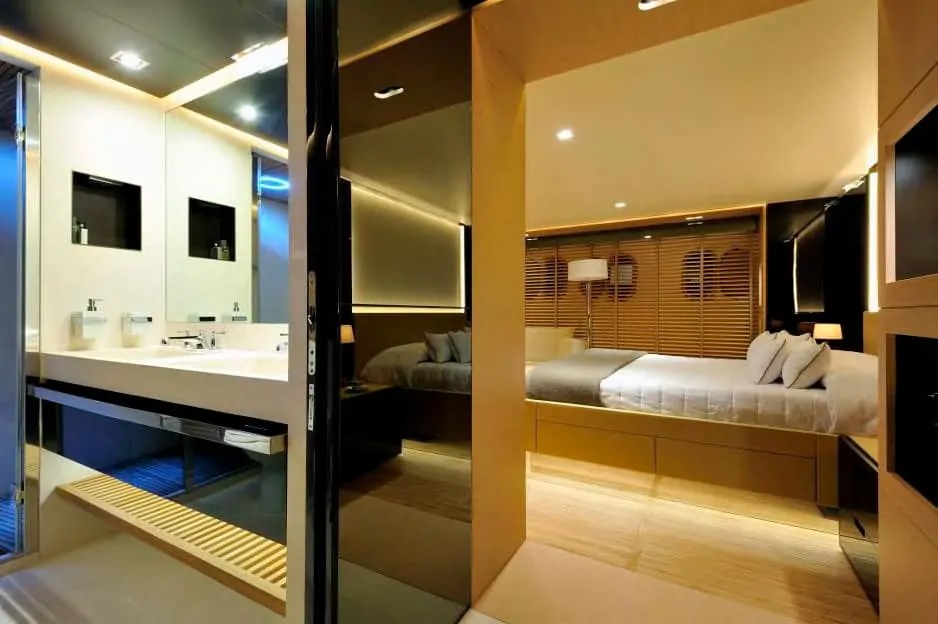 The kitchen is by Boffi and can be found on the main deck, while the lower deck is destined to the owner and his guests, with the owner's suite, a VIP and two twins - all with en-suite bathrooms. There are three crew cabins located forward on the lower deck and can be accessed from the galley.
