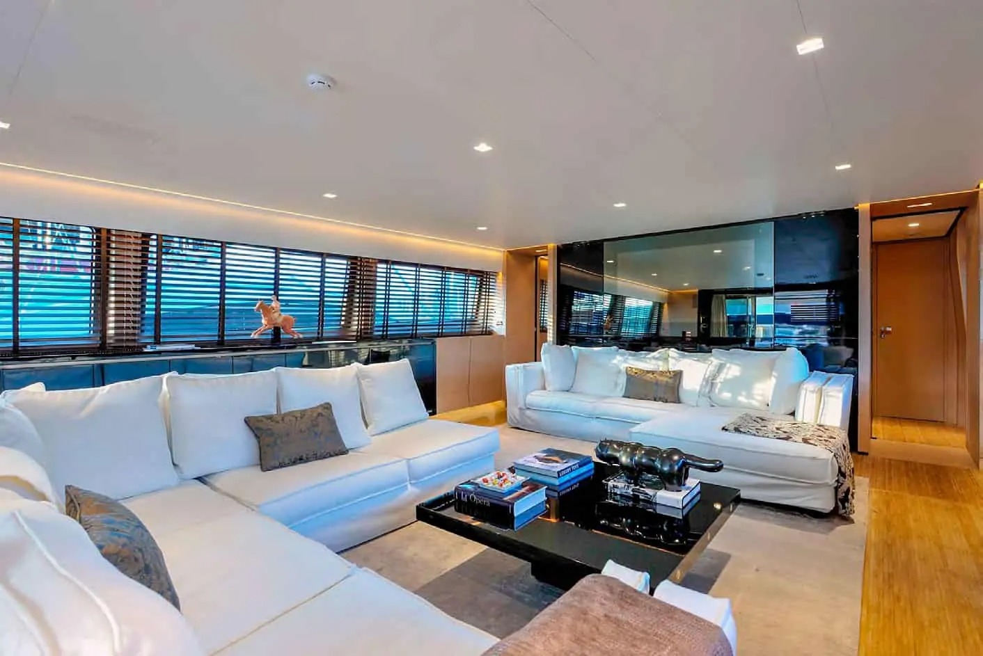 Polished ebony and matt whitened oak were selected for BERTONA III yacht's furniture, while natural bamboo for the floor. The wheelhouse located forward is a separated area on an independent deck, the flybridge of the yacht ...