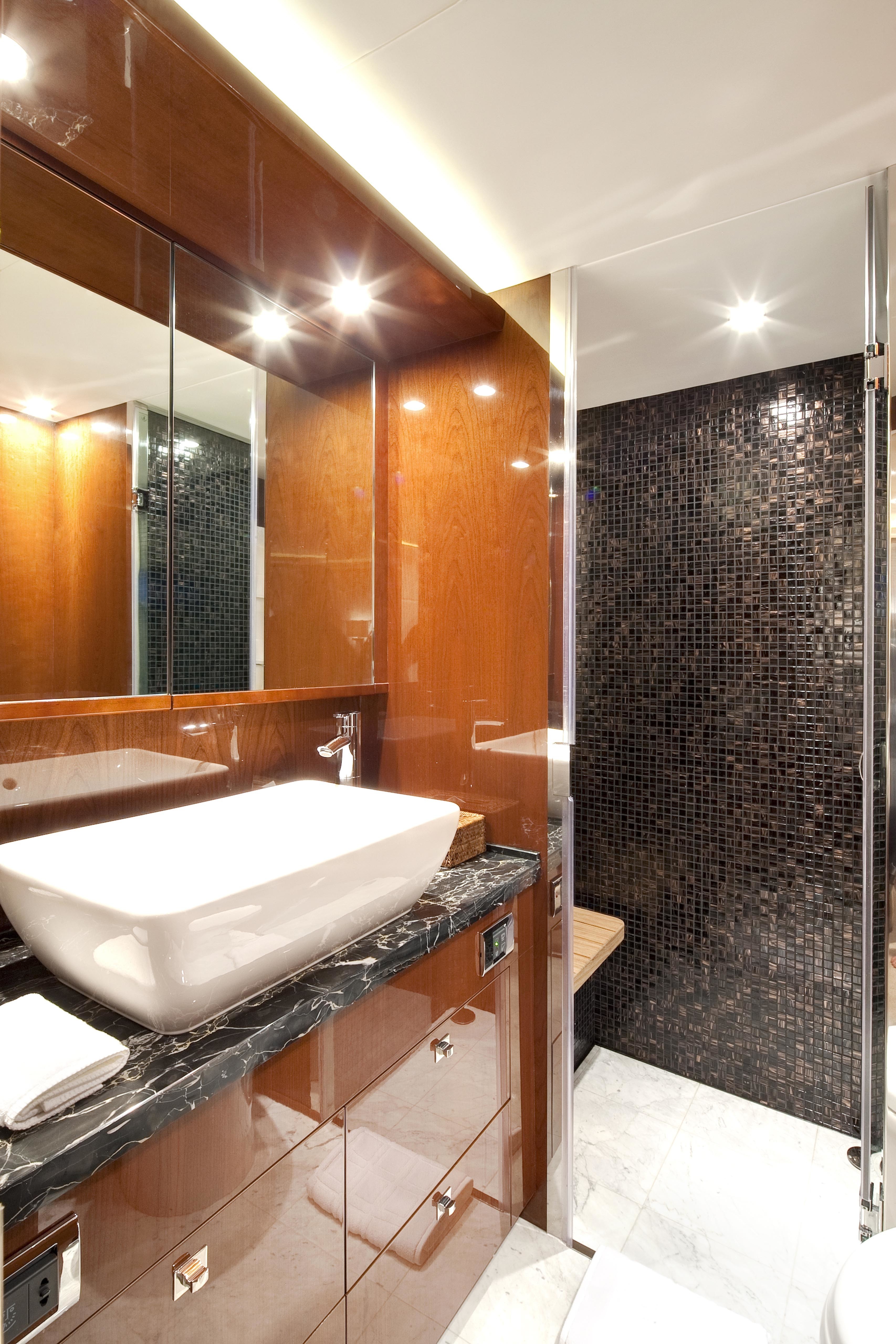 Luxury motor yacht LIVERNANO can accommodate up to 8 guests in 4 cabins located below decks including a Master king size stateroom, a VIP king size cabin, a Double cabin, and a Twin cabin with lower beds.