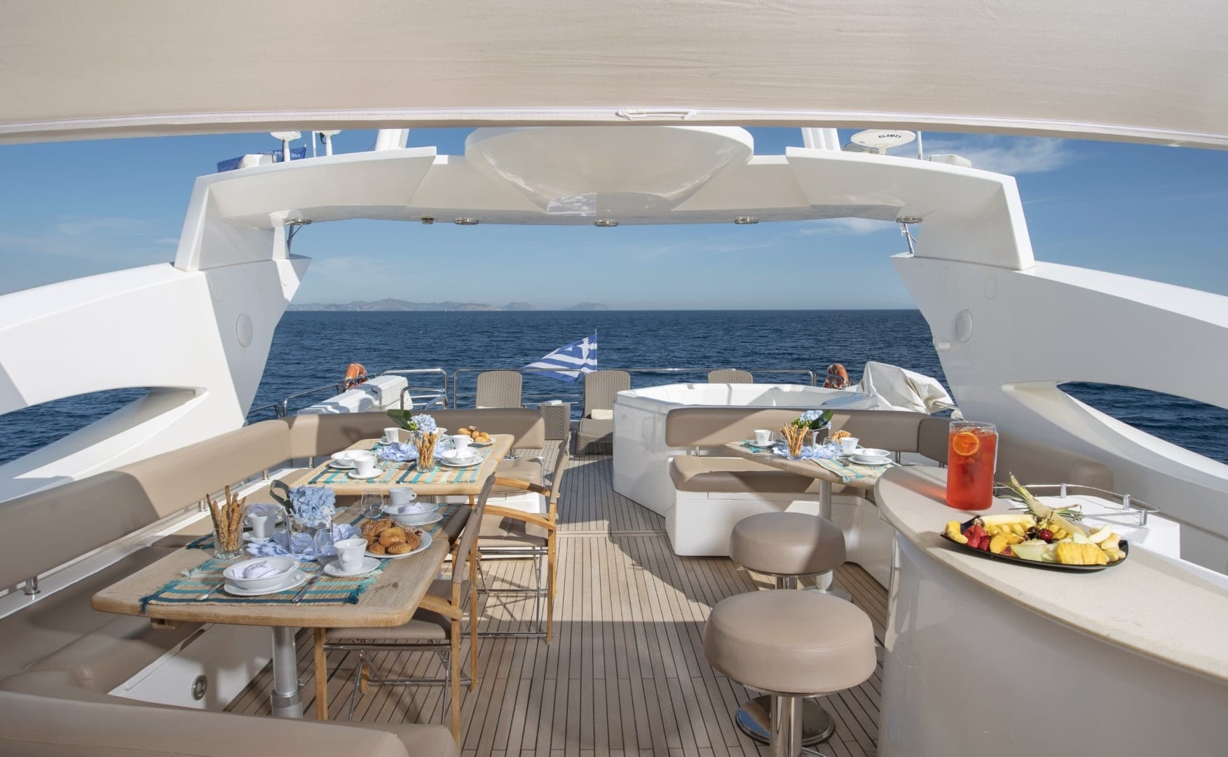 NOTABLE FEATURES for MI ALMA: Modern open plan salon and dining with wet bar ~ On deck full beam master stateroom with spa bath ~ ...
