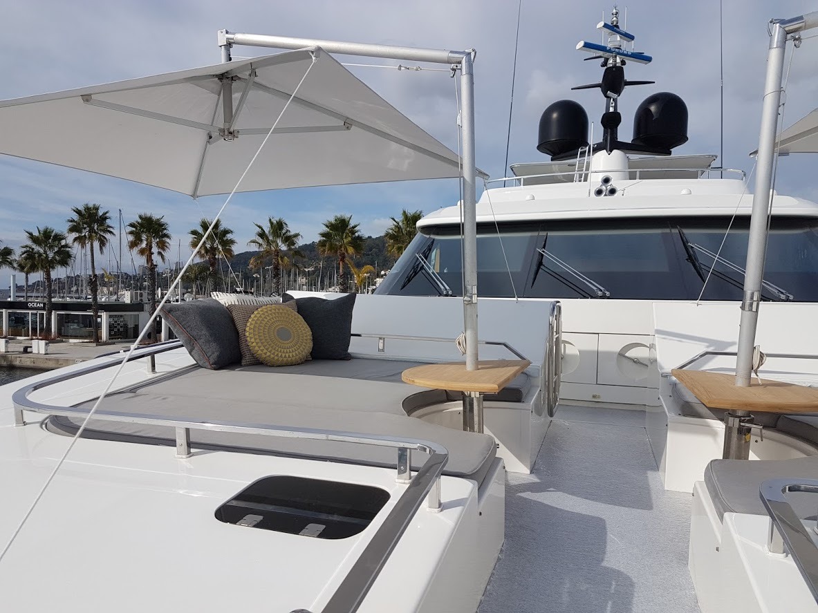 NOTABLE FEATURES OF AWAY: ~ Jacuzzi ~ Wet bar ~ Modern interior design with opulent woods ~ Extensive swim platform ~ Variety of water toys ~ Wi-fi ~ Airconditioning ~ Stabilisers